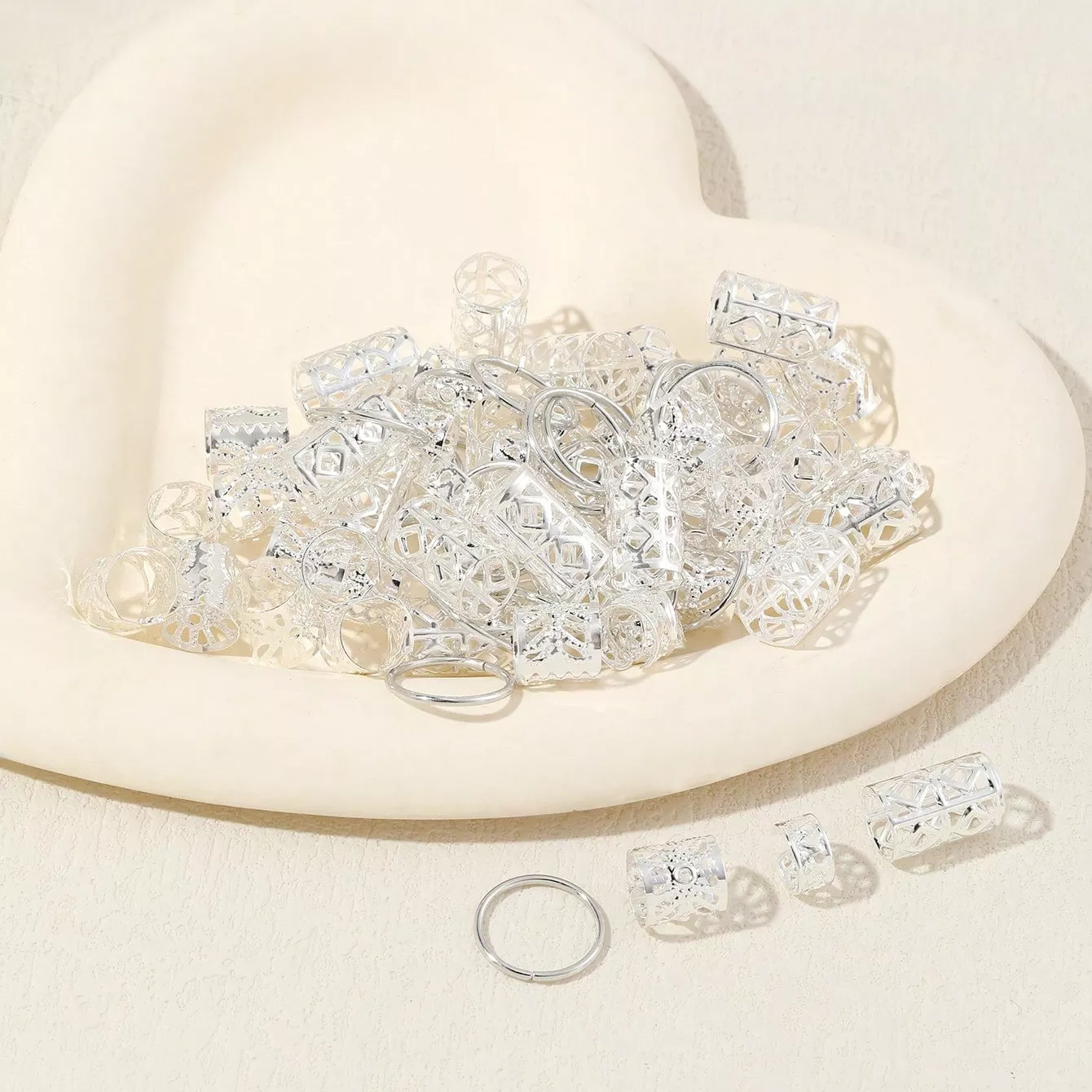 Give your hairstyle a dazzling twist with this 80-piece set of hollow metal hair rings. Designed for braids, dreadlocks, and loc styles, these lightweight metal cuffs instantly elevate your look with a touch of geometric elegance. Whether you’re going for a bohemian vibe, festival flair, or simply want to make every day special, these hair rings are your secret weapon for effortless beauty.